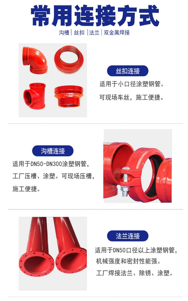 涂塑復(fù)合鋼管涂層材質(zhì):環(huán)氧樹脂(EP)適用于80℃以下的工作環(huán)境,鋼管涂層有極高的附著力,其涂層硬度高、耐沖擊性好,且有較好的耐化學(xué)腐蝕性能。涂塑復(fù)合鋼管具有非常好的綜合性能和耐腐蝕性,耐化學(xué)穩(wěn)定性。 內(nèi)外涂塑復(fù)合鋼管是以焊接鋼管為基材,采取噴砂化學(xué)雙重