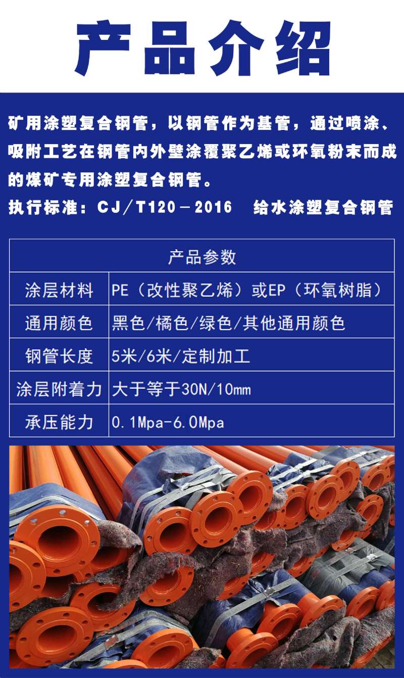 涂塑鋼管,以鋼管為基管,外壁涂裝高附著力、抗沖擊性、防腐耐候型的熱固性粉末涂料,內壁涂裝高附著力、防腐、食品級衛(wèi)生型的熱塑性粉末涂料。采用噴砂化學雙重前處理、預熱、內涂裝、外涂裝、固化、后處理等工藝,制成的給水內外涂塑復合鋼管,是傳統(tǒng)鋼塑管、鍍鋅管升級型的高性價比產品